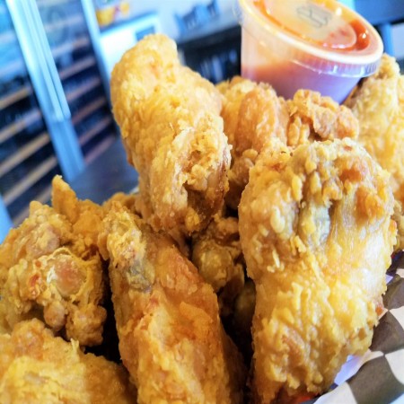 Bone-In Chicken Wings, breaded or naked, tossed or sauce on the side. One sauce, dip or dry rub per 6 wings.