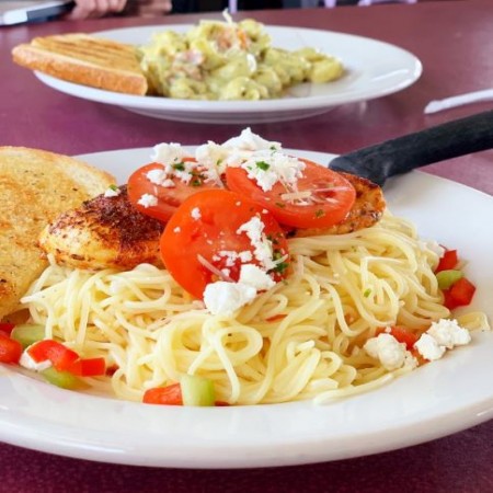 Our homemade dressings Ranch, Blue Cheese, Creamy Feta Herb, and Raspberry Vinaigrette.